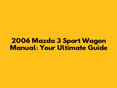 Why a 2006 Mazda 3 Sport Wagon Manual is Essential