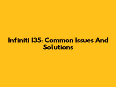 Infiniti I35: Common Issues And Solutions