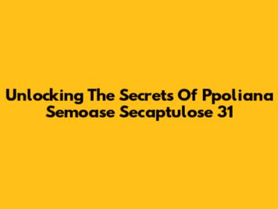 Unlocking The Secrets Of Ppoliana Semoase Secaptulose 31