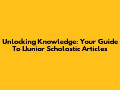 Unlocking Knowledge: Your Guide To IJunior Scholastic Articles