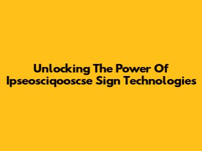 Unlocking The Power Of Ipseosciqooscse Sign Technologies
