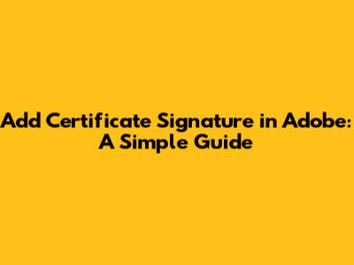 Adding a certificate signature in Adobe is crucial for ensuring the authenticity and integrity of your documents. Whether you're signing contracts, agreements, or official reports, a digital signature provides an added layer of security and verification. This guide will walk you through the process step-by-step, making it easy for anyone to add a certificate signature to their PDF documents using Adobe Acrobat.