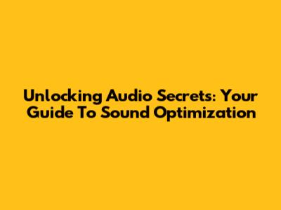 Unlocking Audio Secrets: Your Guide To Sound Optimization