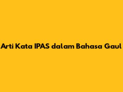 Arti Kata 'IPAS' Dalam Bahasa Gaul