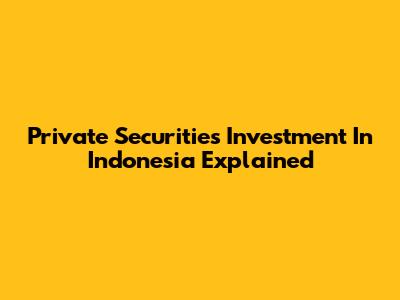 Private Securities Investment In Indonesia Explained