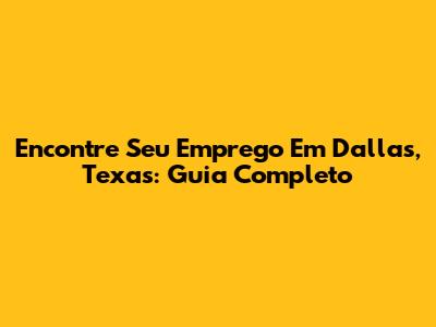 Encontre Seu Emprego Em Dallas, Texas: Guia Completo