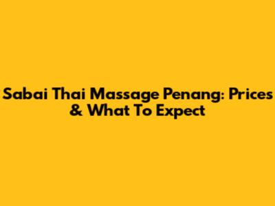 Sabai Thai Massage Penang: Prices & What To Expect