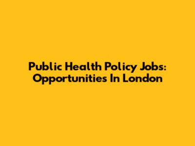 Public Health Policy Jobs: Opportunities In London
