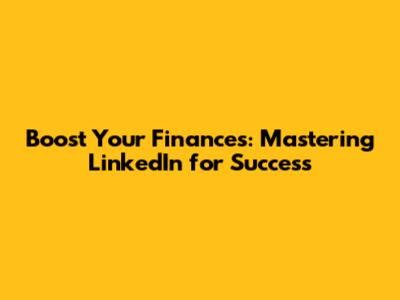 Boost Your Finances: Mastering LinkedIn For Success