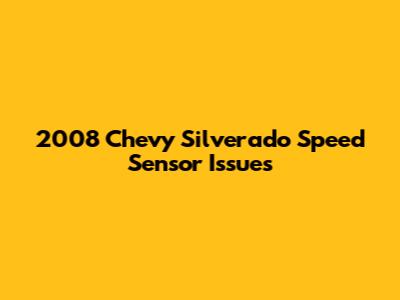 2008 Chevy Silverado Speed Sensor Issues