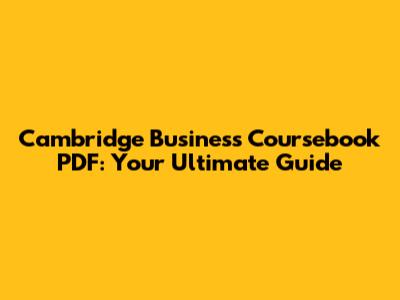 Hey guys! So, you're on the hunt for the Cambridge Business Coursebook PDF, huh? Awesome! You're in the right place. This guide is your one-stop shop for everything you need to know about this fantastic resource. We'll dive deep into what makes the Cambridge Business Coursebook so great, where you can find the PDF, and how to make the most of it. Whether you're a student, a professional, or just someone looking to boost your business savvy, this is for you. Let's get started!