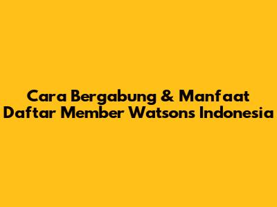 Cara Bergabung & Manfaat Daftar Member Watsons Indonesia