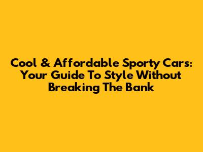 Cool & Affordable Sporty Cars: Your Guide To Style Without Breaking The Bank
