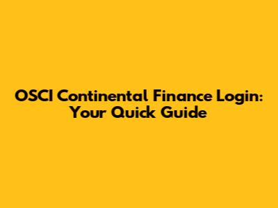 OSCI Continental Finance Login: Your Quick Guide