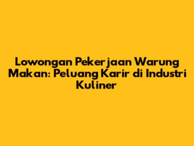 Lowongan pekerjaan warung makan merupakan pintu gerbang bagi banyak orang yang ingin berkecimpung di dunia kuliner. Industri warung makan, yang dikenal dengan kehangatan dan kelezatannya, selalu membuka peluang bagi mereka yang bersemangat. Artikel ini akan membahas secara mendalam tentang lowongan pekerjaan warung makan, mulai dari jenis pekerjaan yang tersedia, keterampilan yang dibutuhkan, hingga tips untuk sukses dalam melamar pekerjaan di sektor ini. Mari kita selami dunia lowongan pekerjaan warung makan dan temukan peluang terbaik untuk Anda!