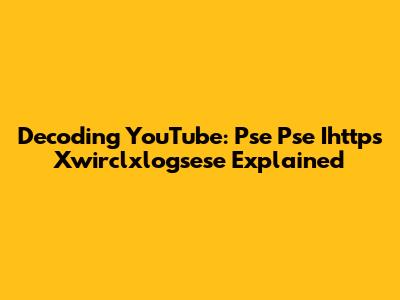 Decoding YouTube: Pse Pse Ihttps Xwirclxlogsese Explained