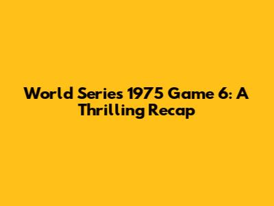 World Series 1975 Game 6: A Thrilling Recap