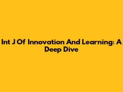 Int J Of Innovation And Learning: A Deep Dive