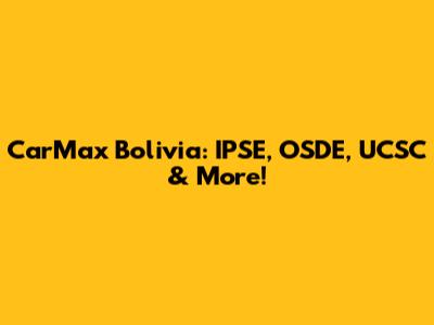 CarMax Bolivia: IPSE, OSDE, UCSC & More!
