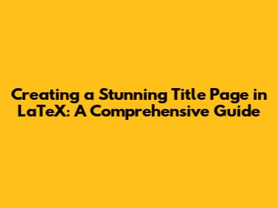 Hey everyone! Ever wondered how to make a super professional and eye-catching title page in LaTeX? Well, you're in the right place! Crafting a killer title page in LaTeX might seem daunting at first, but trust me, it's totally manageable. Today, we're diving deep into the world of LaTeX title pages. We'll explore all the essential commands, tricks, and best practices to help you design a title page that not only looks fantastic but also accurately represents your work. So, whether you're a student working on a thesis, a researcher preparing a paper, or just someone who wants to know the secret, this guide is your go-to resource. Get ready to transform your documents from bland to brilliant!