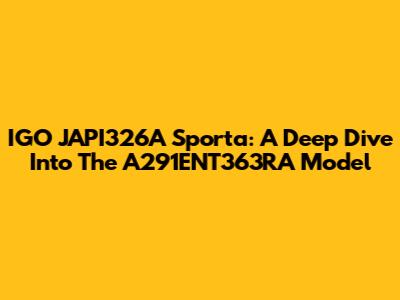 IGO JAPI326A Sporta: A Deep Dive Into The A291ENT363RA Model