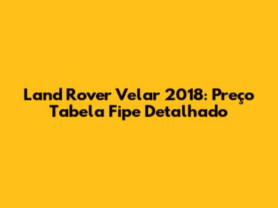 Land Rover Velar 2018: Preço Tabela Fipe Detalhado