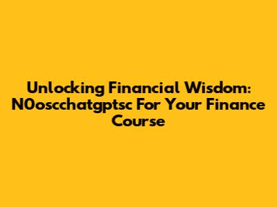Unlocking Financial Wisdom: N0oscchatgptsc For Your Finance Course