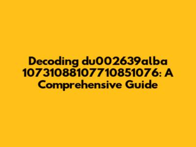\nLet's dive into the cryptic world of du002639alba 10731088107710851076. What exactly is this intriguing string of characters and numbers? Well, without specific context, it's challenging to pinpoint its exact meaning. However, we can explore potential interpretations and scenarios where such a code might appear. It could be a product identifier, a serial number, a transaction code, or even a component within a larger data structure. Understanding the possible origins and uses will help us unravel its mystery and appreciate its significance, whatever it may be. Guys, if you've stumbled upon this code and are scratching your heads, you're in the right place! Let's explore the possibilities together and see if we can shed some light on this enigma. The beauty of such codes is that they often hold specific meaning within a particular system or context. Consider the realm of product manufacturing. Manufacturers often assign unique identifiers to track inventory, manage production processes, and ensure quality control. The code in question could very well be an internal identifier used by a specific company, relating to a product batch, a manufacturing date, or even a specific component used in the product. Another possibility is that it relates to a financial transaction. Transaction codes are used to track payments, orders, and other financial activities. Banks, e-commerce platforms, and other financial institutions generate unique codes to ensure the integrity and traceability of each transaction. These codes often contain information about the date, time, amount, and parties involved in the transaction. Think of it as a digital fingerprint for every financial interaction, ensuring that everything is accounted for and that no funny business is going on. Exploring these possibilities will require us to analyze the context in which this string appears.