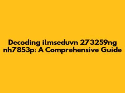 Unraveling the Mystery: What Could ilmseduvn 273259ng nh7853p Be?