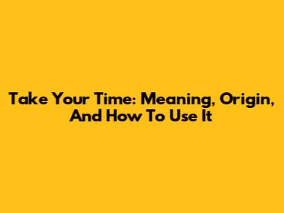 Take Your Time: Meaning, Origin, And How To Use It