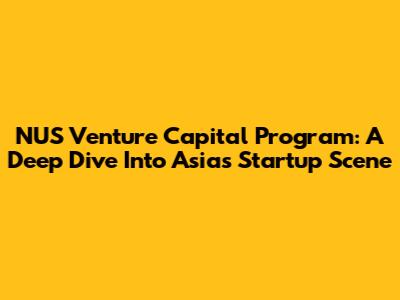 NUS Venture Capital Program: A Deep Dive Into Asia's Startup Scene