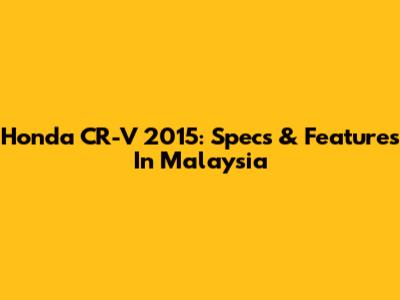 Honda CR-V 2015: Specs & Features In Malaysia
