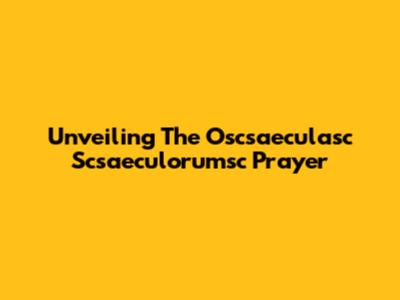 Unveiling The Oscsaeculasc Scsaeculorumsc Prayer