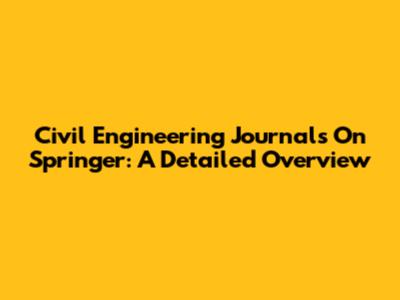 Civil Engineering Journals On Springer: A Detailed Overview