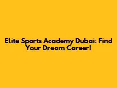 Elite Sports Academy Dubai: Find Your Dream Career!