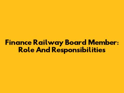 Finance Railway Board Member: Role And Responsibilities