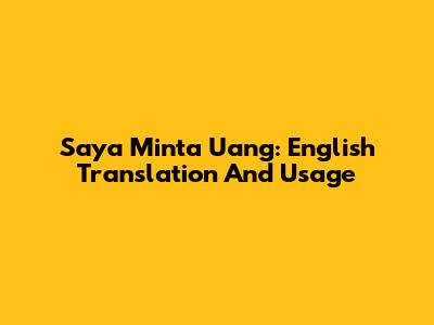 Saya Minta Uang: English Translation And Usage