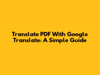 Translate PDF With Google Translate: A Simple Guide