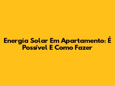 Energia Solar Em Apartamento: É Possível E Como Fazer