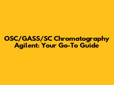 OSC/GASS/SC Chromatography Agilent: Your Go-To Guide