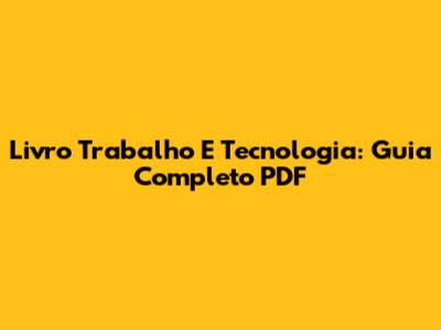 Livro Trabalho E Tecnologia: Guia Completo PDF