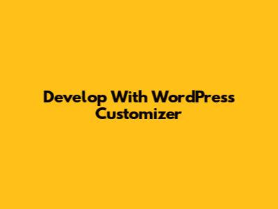 Develop With WordPress Customizer