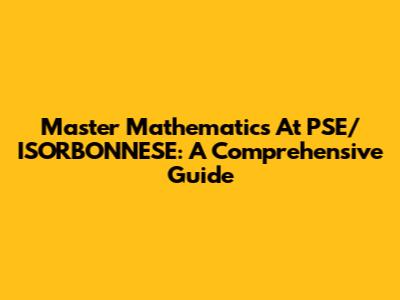 Master Mathematics At PSE/ISORBONNESE: A Comprehensive Guide