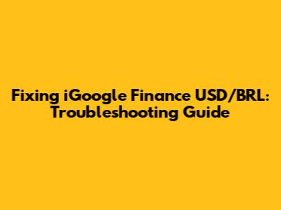 Hey guys! Ever tried to keep tabs on the USD/BRL exchange rate using iGoogle Finance and found it just wasn't playing ball? You're not alone! It can be super frustrating when your go-to tool decides to take a break. Let's dive into why your iGoogle Finance USD/BRL might not be working and, more importantly, how to get it back on track. Trust me; by the end of this, you'll be a pro at troubleshooting this issue!