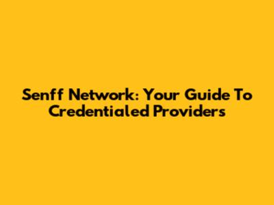 Senff Network: Your Guide To Credentialed Providers