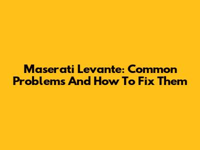 Maserati Levante: Common Problems And How To Fix Them