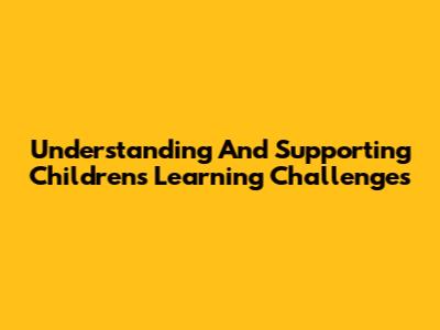 Understanding And Supporting Children's Learning Challenges