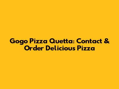 Gogo Pizza Quetta: Contact & Order Delicious Pizza