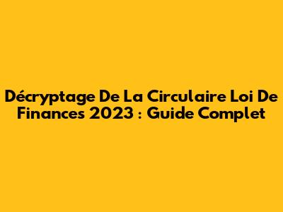 Décryptage De La Circulaire Loi De Finances 2023 : Guide Complet