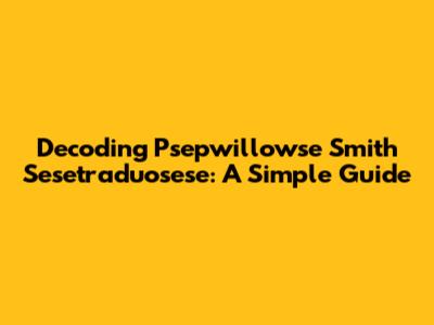 Decoding Psepwillowse Smith Sesetraduosese: A Simple Guide